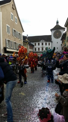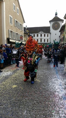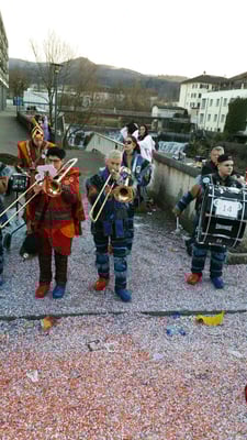 Denn am Freitag ging das Programm weiter. Wir spielten im Restaurant Rössli in Brislach und machten uns in allen Belangen (spielen, tanzen, trinken usw.) bereit für die grossen Tage in Laufen. Denn am Samstag hatten wir frei (ausser unser Präsi, welche arbeiten musste... uns war es egal) und genossen den Umzug in Breitenbach als Zuschauer.