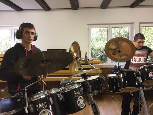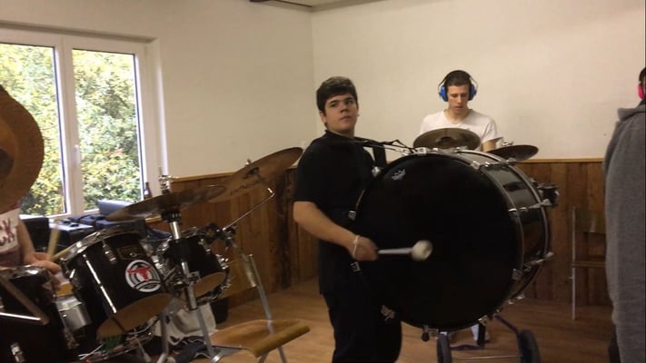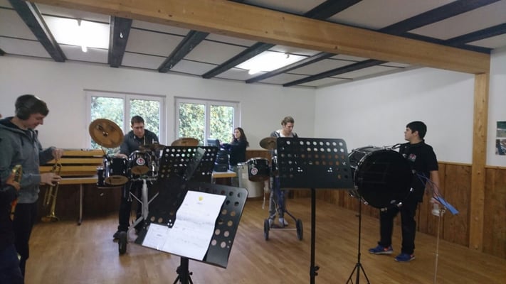 Schliesslich waren wir soweit! Nachdem das letzte Caquelon seinen Weg nach Brislach gefunden hatte, fuhren wir zusammen Richtung Grenchen. Am Zielort, dem Pfadihaus Akkon, angekommen, liessen wir uns nur kurz von den Baugerüsten aufhalten und gingen sogleich ans Einräumen und Instrumente bereit legen.