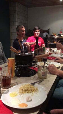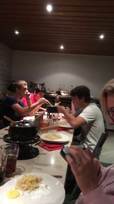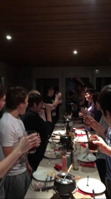 Auch mit vollem Magen lässt es sich spielen, wie wir seit jenem Wochenende wissen. Doch was noch besser ist: noch mehr essen! Denn zum Abendessen liessen wir uns von einem chinesischen Fondue verwöhnen und prosteten uns nur gelegentlich dabei zu. An dieser Stelle: ein Hoch auf Senza Parole!
