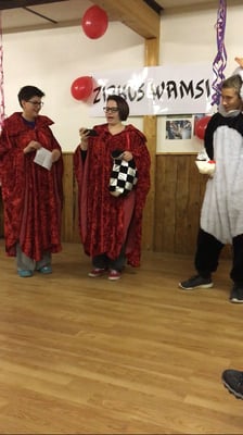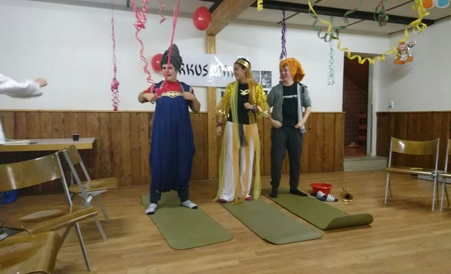 Und dann kam da die Abendunterhaltung... Jedes Mitglied erhielt eine Aufgabe, welche sie am Abend des Probeweekends erfüllen sollte. Um was es sich genau handeln soll, wussten nur die Vorstandsmitglieder, welche die restlichen Wamser dann zum Zirkus Wamsi begrüssen konnte. Uns wurden Tier-Shows, orientalische Tänze, Zaubertricks, Sorgentelefone, Dirty Dancing, Zuckerwatte und viel Pop-Corn geboten! Dafür aber auch wenig Schlaf.