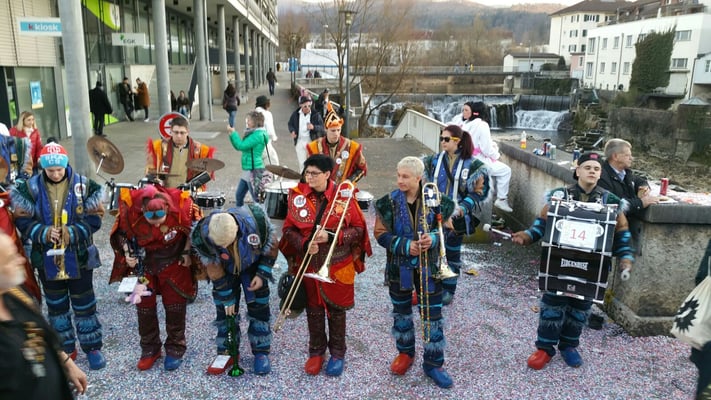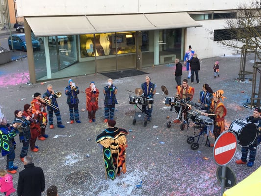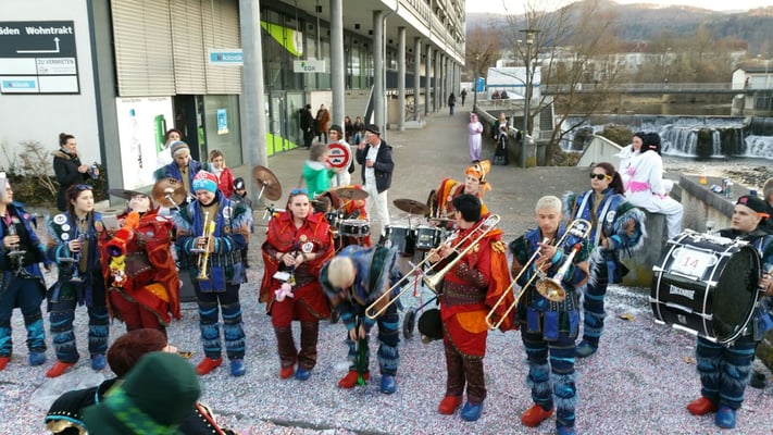 Dafür waren wir umso aktiver in Laufen! Mit neuem Kostüm marschierten wir durchs Stedtli und spielten mit viel Herz und Freude. Weil wir das gerne machen. Weil wir auch lange dafür üben. Weil wir einfach geile Mädels sind! Weil wir einfach geile Jungs sind! Weil wir einfach etwas sind: steil und spitz!